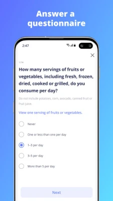 Measure your health – answer a free questionnaire covering your nutrition, physical activity, and lifestyle habits. Add relevant body measurements, such as BMI, heart rate, and waist circumference.