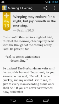 For over one hundred years, Christians have gotten up and gone to bed with Charles Spurgeon's devotional Morning and Evening as a companion. With a reading to begin and end each day throughout the year, you will come to appreciate Spurgeon's emphasis on the importance of abiding in Christ and meditating on God's Word. His wisdom and counsel provide a timeless guide through the trials and triumphs of the year. The richness of his biblical understanding offers readers a look into the heart of one of England's foremost pastors and enduring Christian authors.