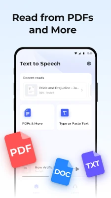 - Convert text to speech from PDFs, Docs, Books & Web